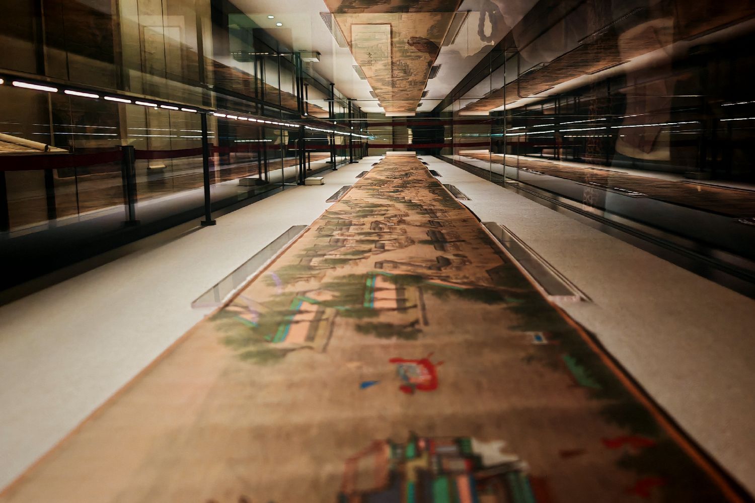 仇英版《清明上河图》仅展出到10月底。图为2024年10月23日,展柜内摆放着《清明上河图》真迹。(滕瑞好/摄)
