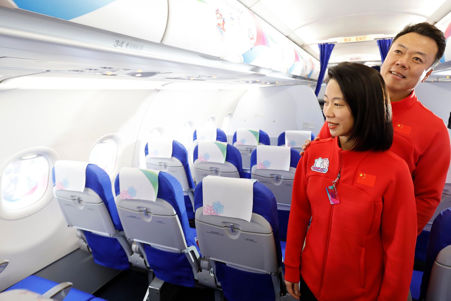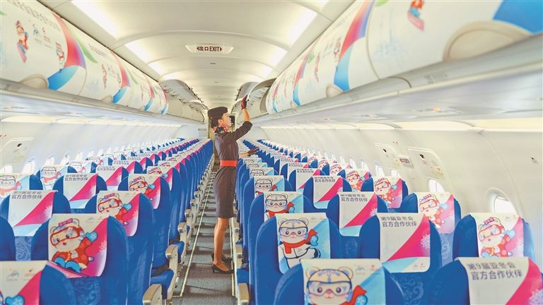 客舱内部满满亚冬元素。(图片来源:新华社)
