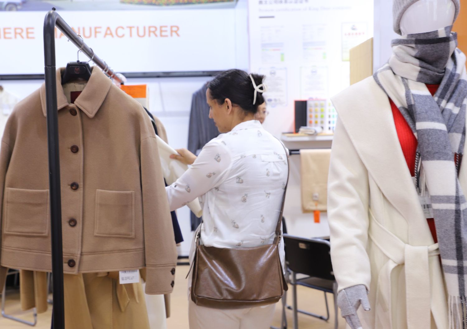 参展企业的特色羊绒制品吸引客商驻足。(图片来源:北京人民网)