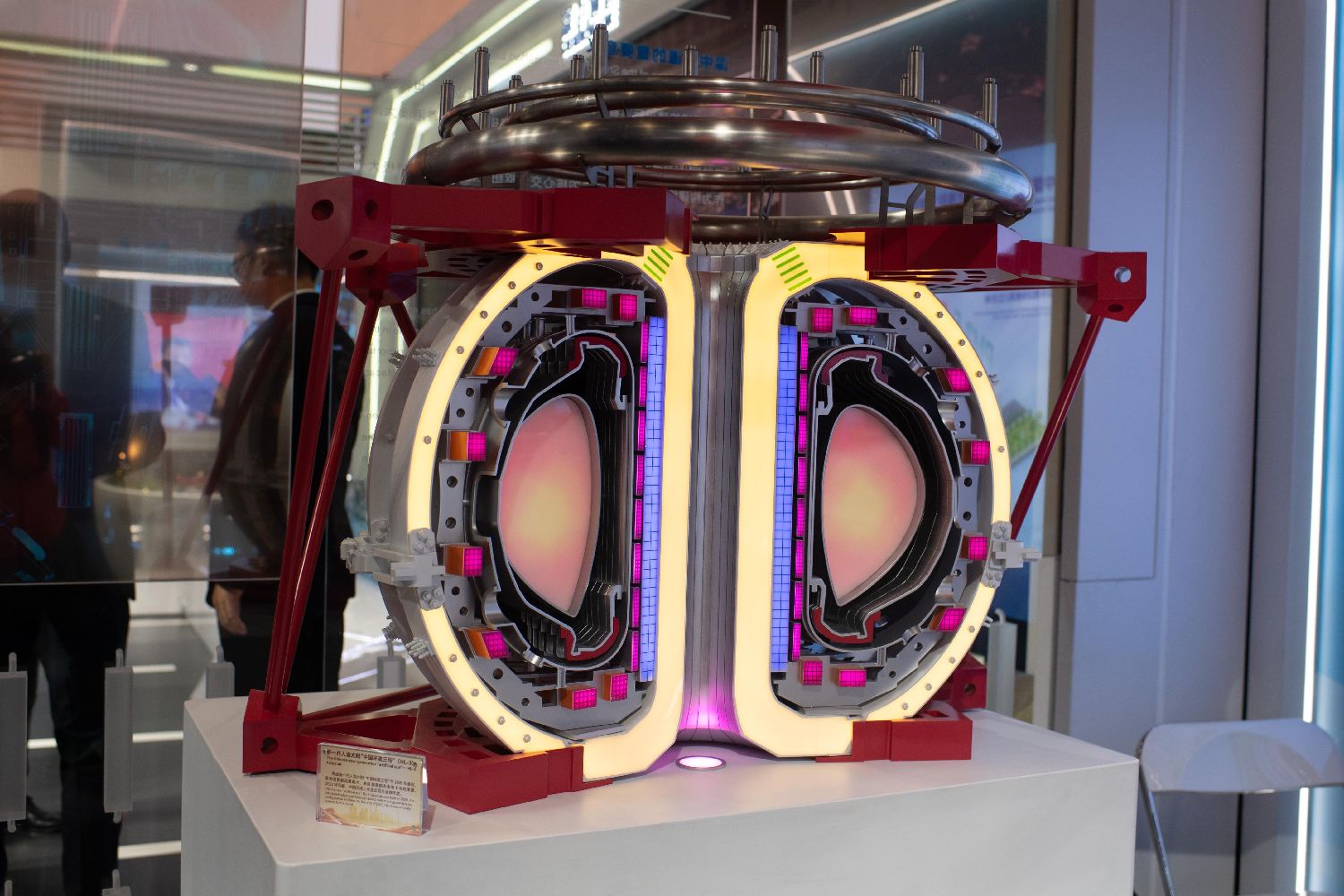 在第七届进博会中国馆展出的新一代人造太阳“中国环流三号”模型。(图片来源:北京人民网)