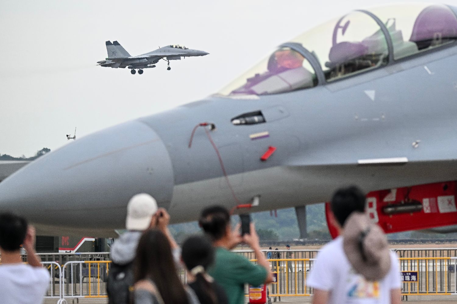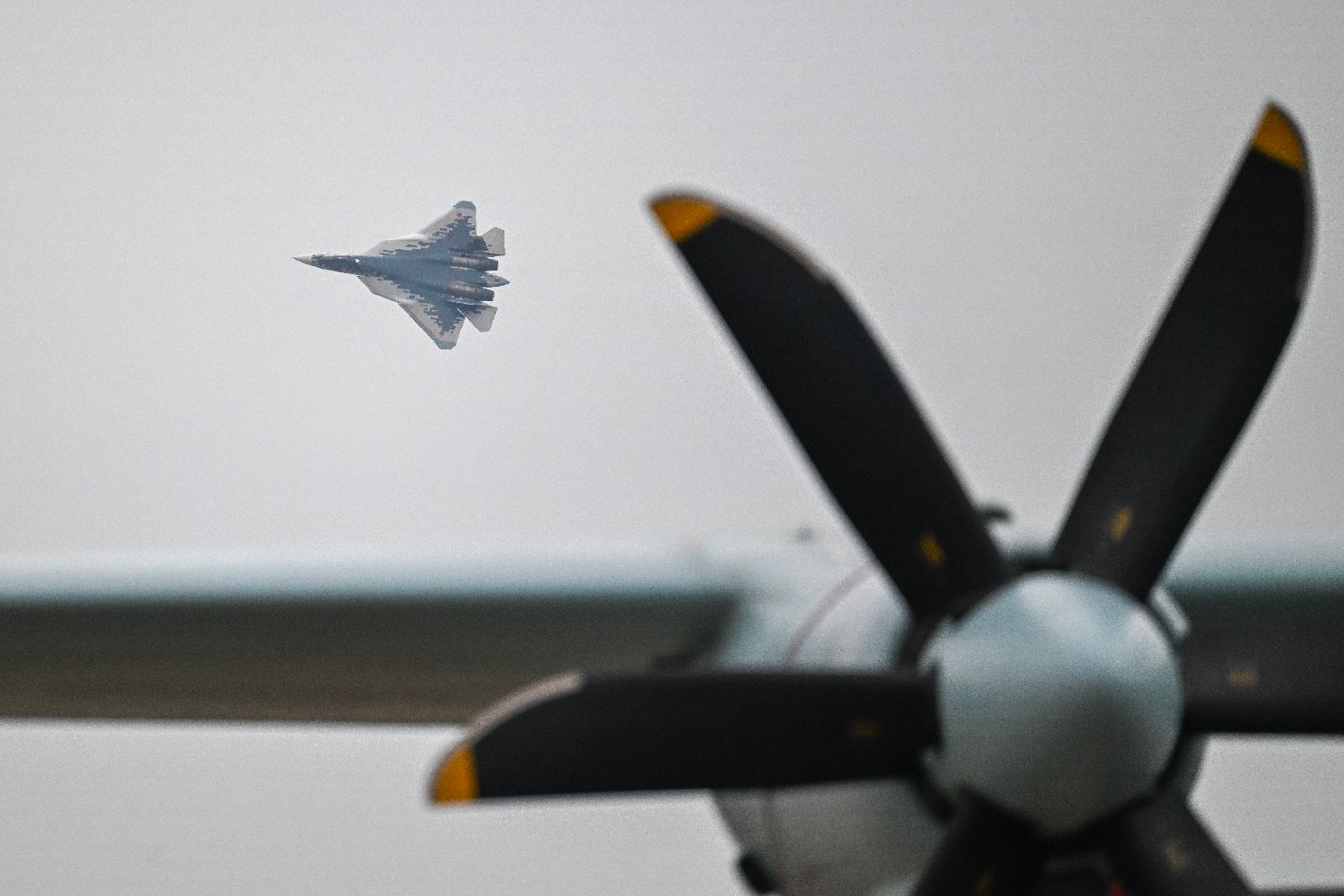 目前已有105家企业确定参展,多款无人机、无人船将在此进行“首展首秀”,于水天之间带来颇具科技感的全景化展演。图为“苏-57”隐形战机进行场地适应性训练。(图片来源:中新社)