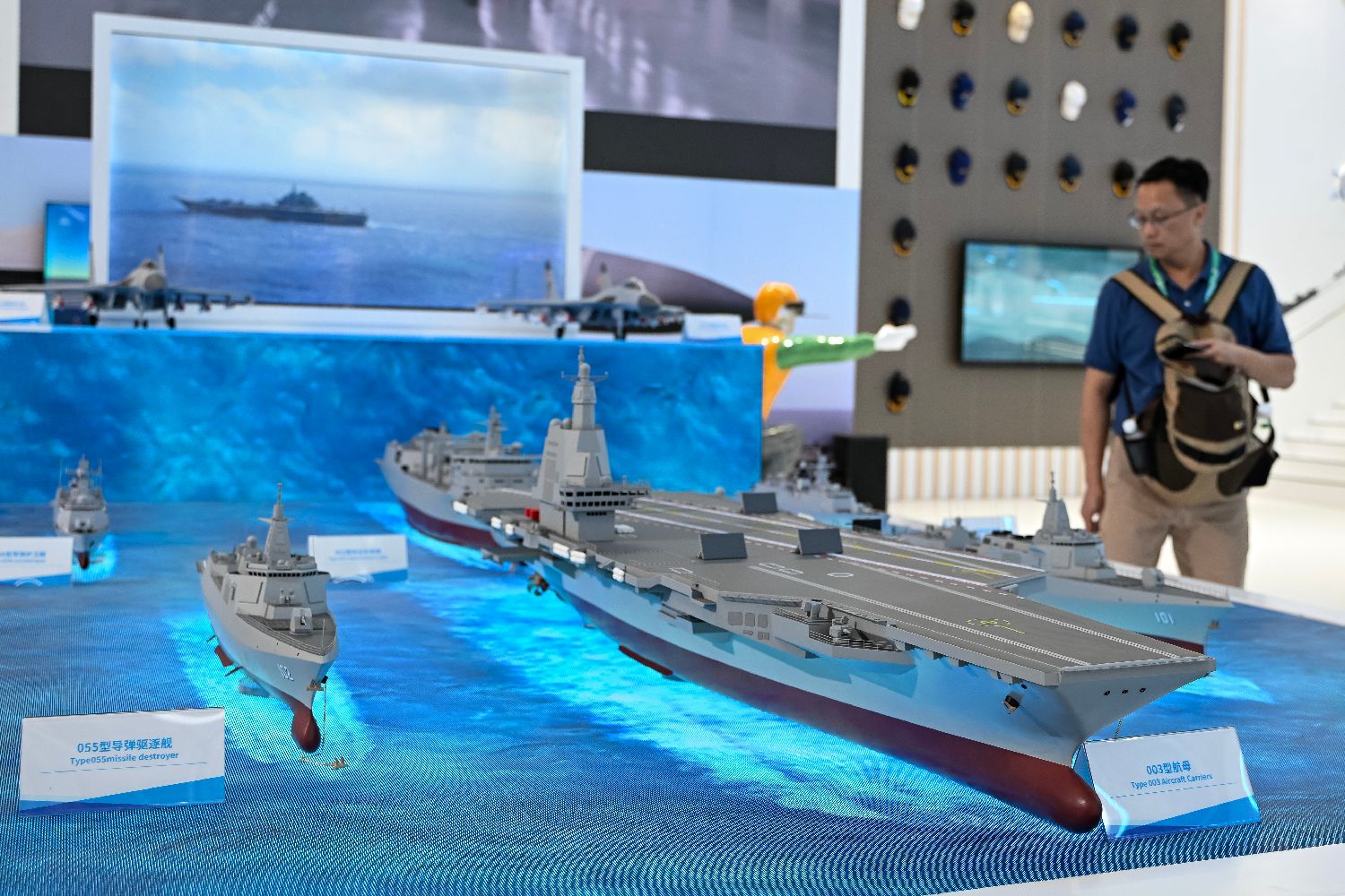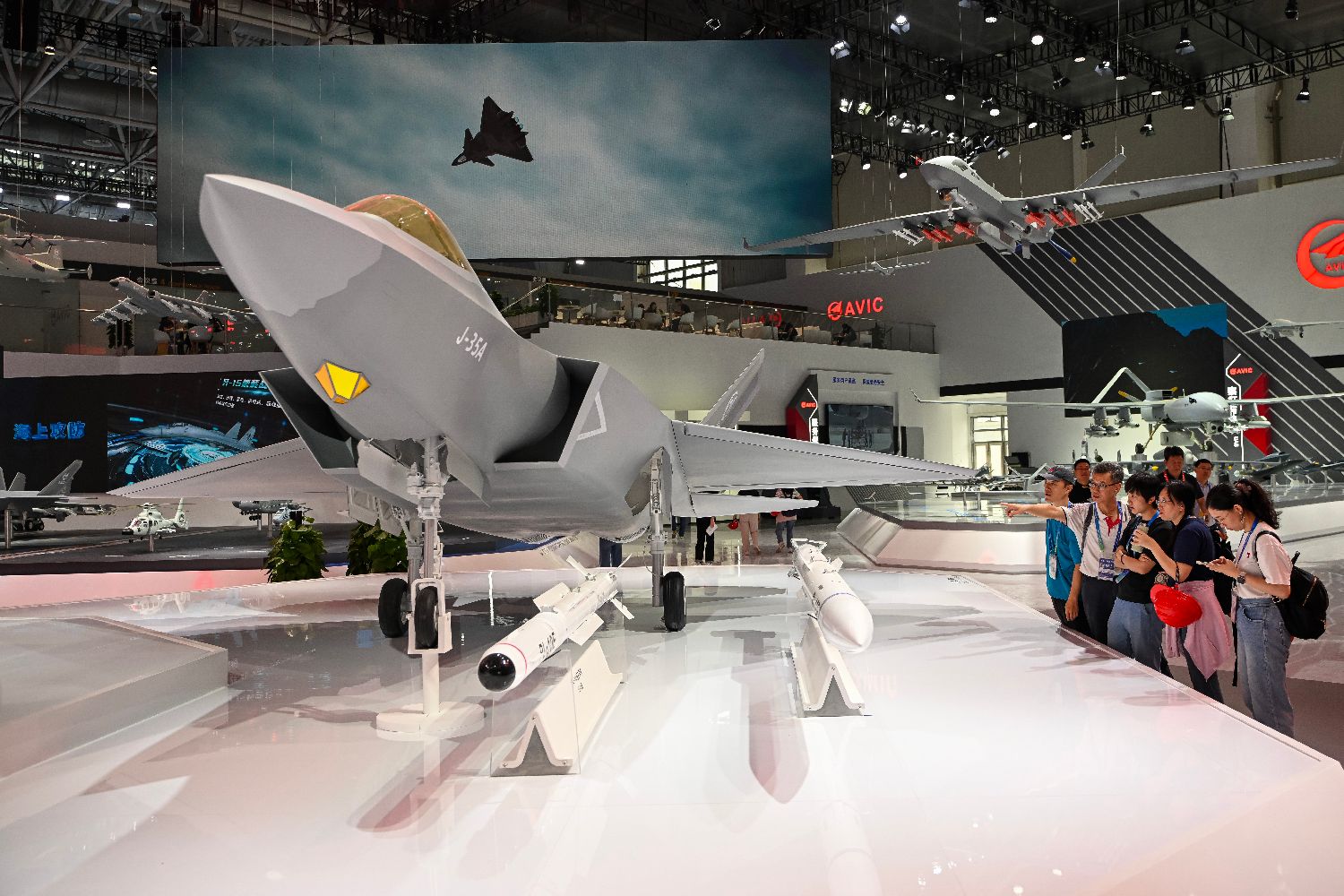 “J-35A”模型吸引观众。(图片来源:中新社)