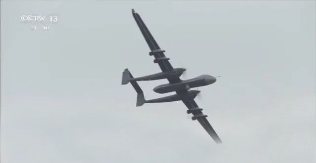在本届航展上,双尾蝎B无人机将代表中国大型固定翼无人机进行飞行表演。(图片来源:大陆央视新闻视频截图)