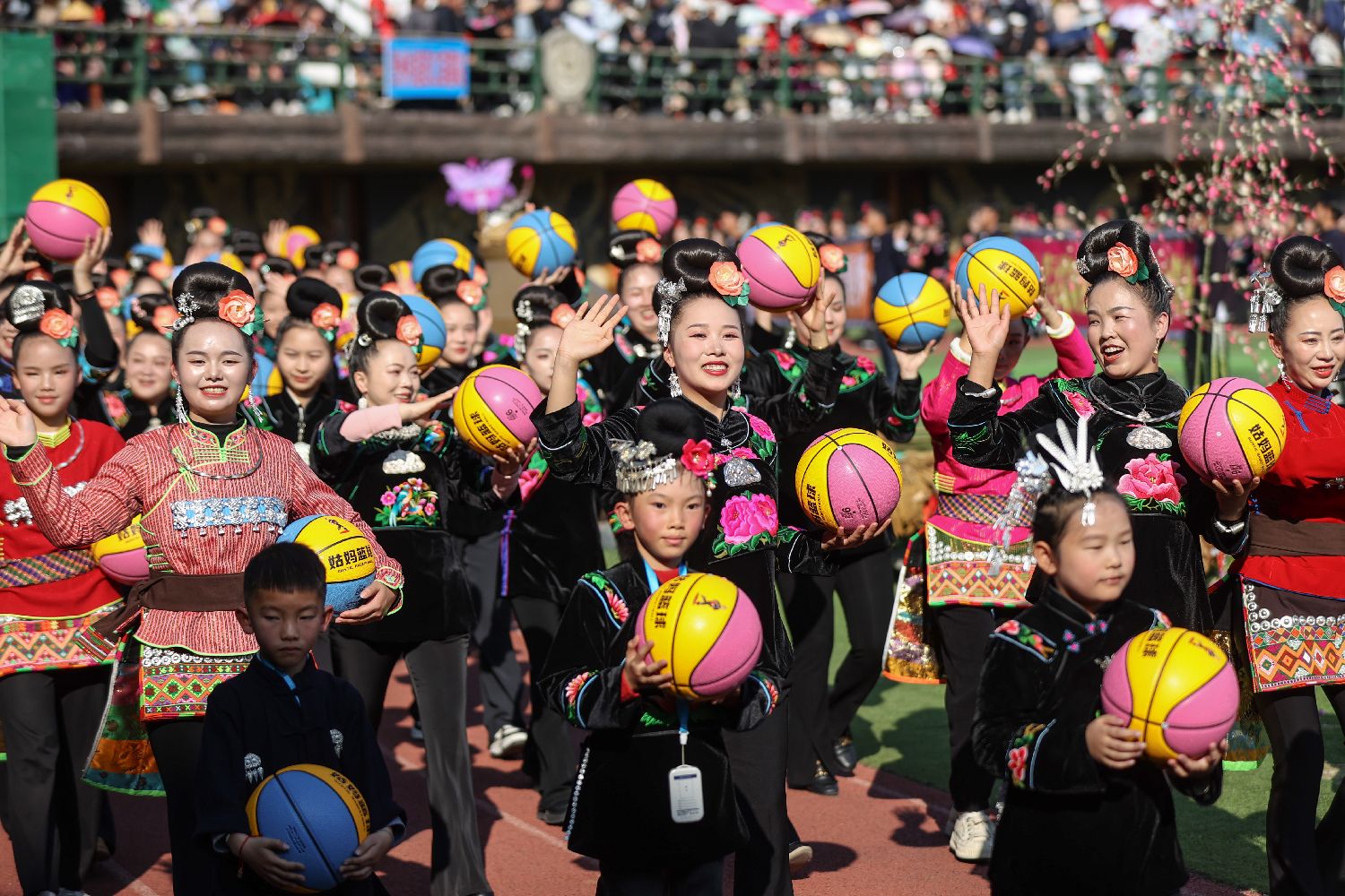 雷山“姑妈篮球”代表队10日参加巡游。