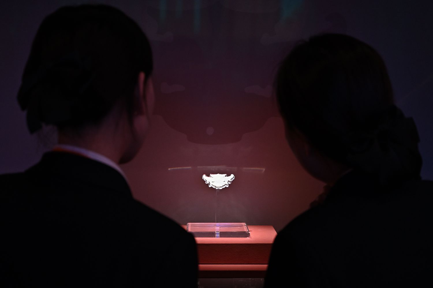 46年考古工作,中国考古工作者完成遗址分布范围内约400万平方米的考古调查,勘探面积达280万平方米,发掘面积近3万平方米。图为民众参观陶寺遗址博物馆馆藏文物——玉兽面。(图片来源:中新社)