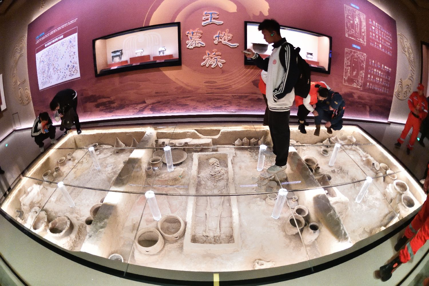 民众参观陶寺遗址博物馆内的墓葬遗址。(图片来源:中新社)