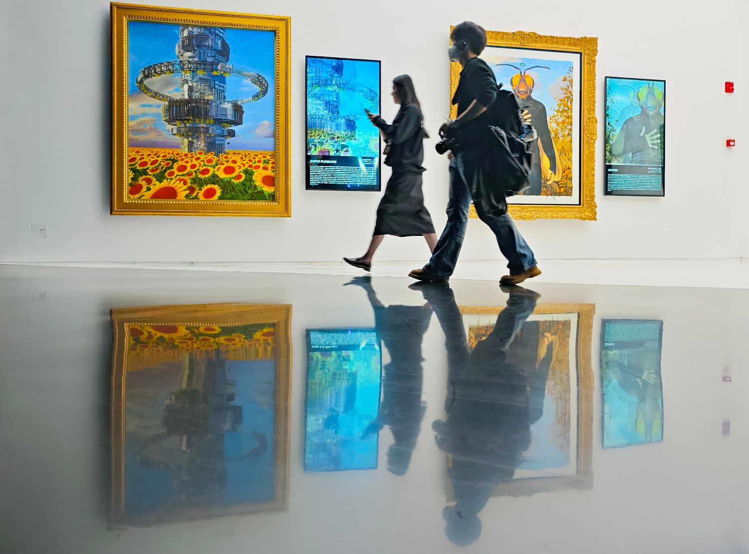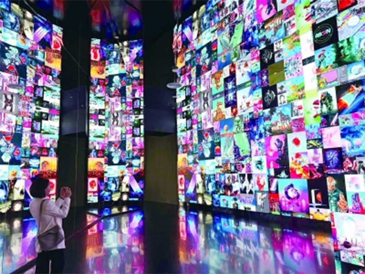 国际知名当代数字艺术家Beeple全球首场个人大展“Beeple:来自人造未来的故事”亮相德基艺术博物馆。(图片来源:中新社)