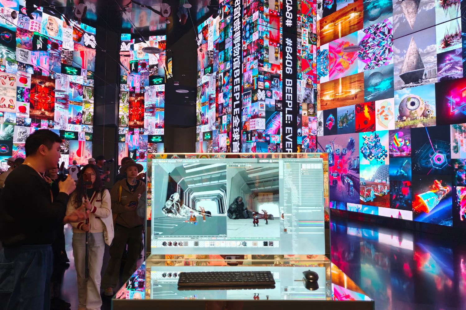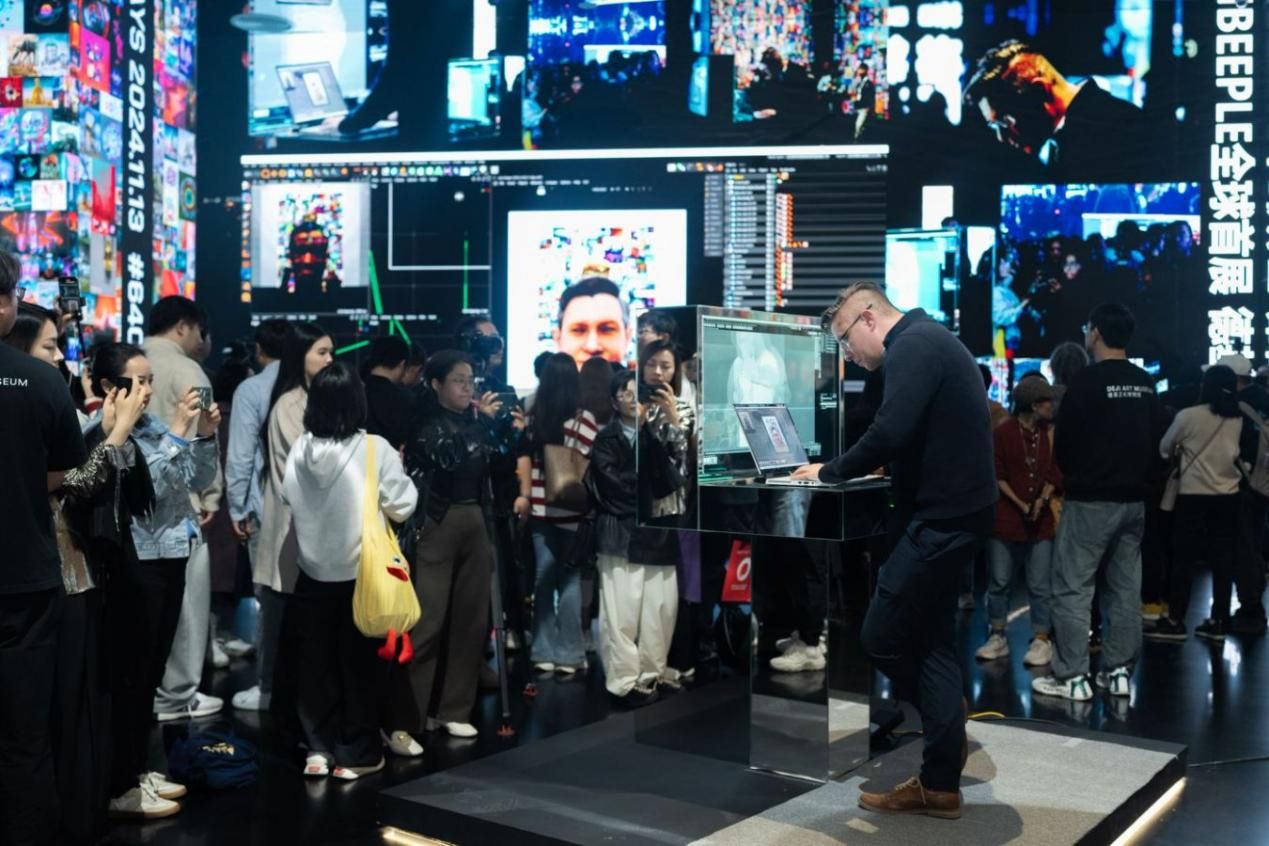 Beeple是火遍全球的数字艺术家,其作品曾经拍出过6934万美元(约合人民币4.87亿元)的高价。图为展览吸引民众参观。(图片来源:中新社)