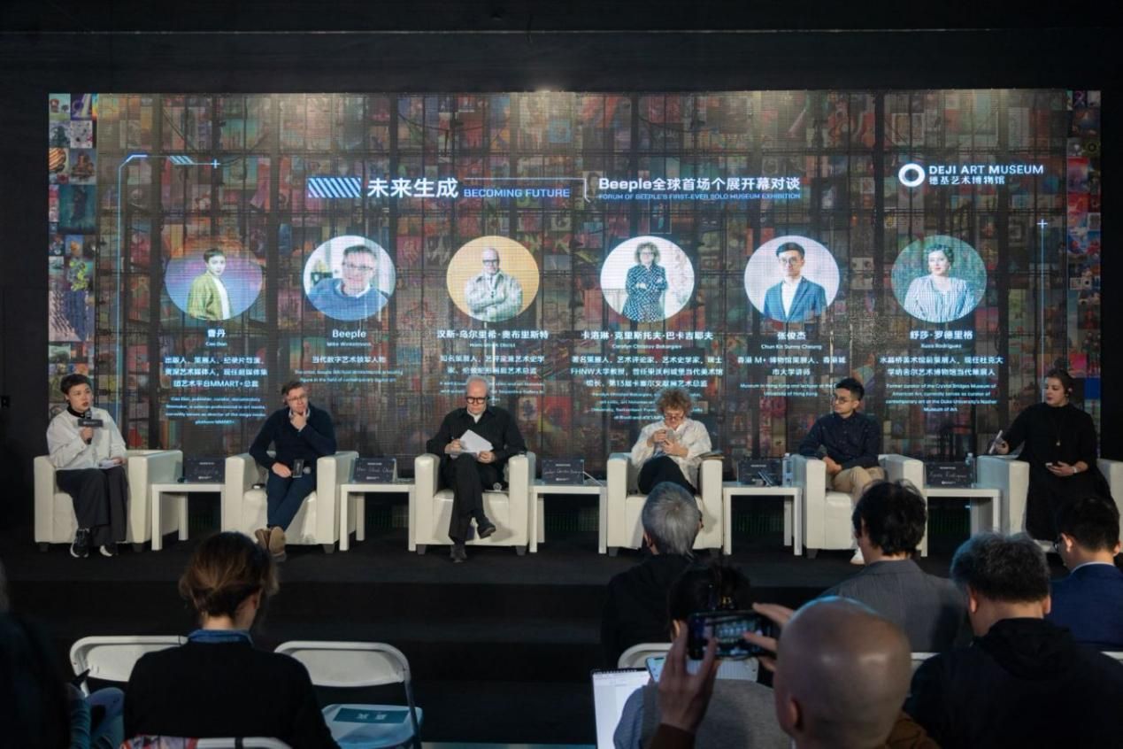 Beeple全球首场个展开幕对谈“Becoming Future未来生成”于展览开幕当日(13日)上午举办。(图片来源:新华网江苏频道)