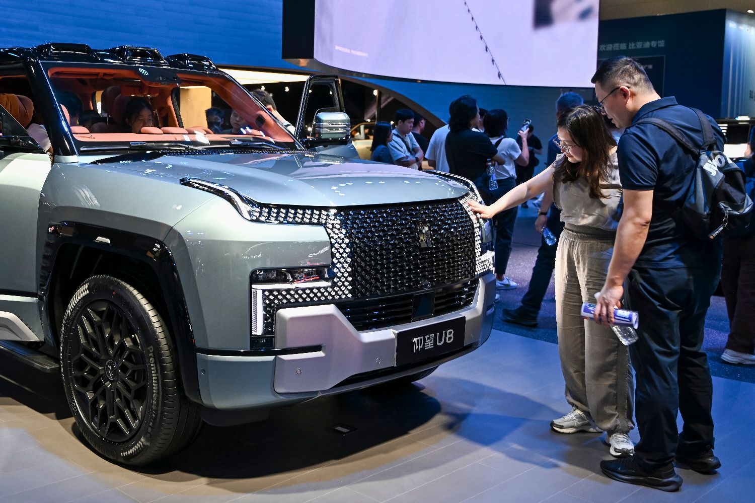 比亚迪仰望“U8”17日吸引参观者。(图片来源:中新社)
