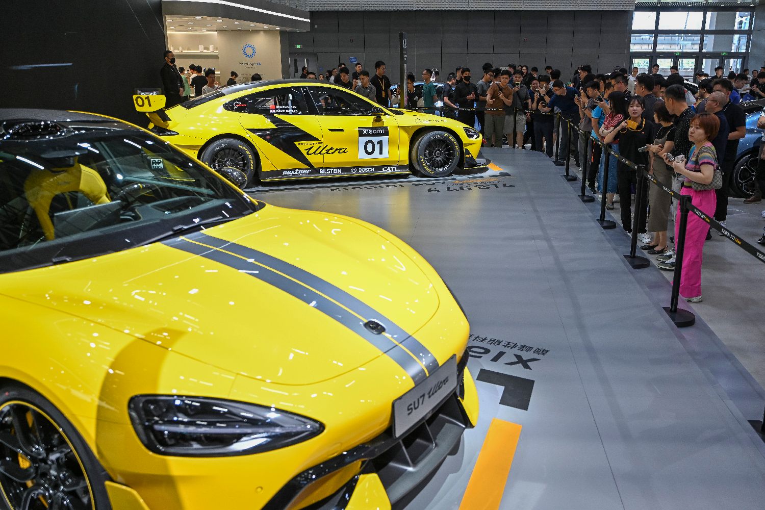 小米“SU7Ultra”17日吸引参观者。(图片来源:中新社)