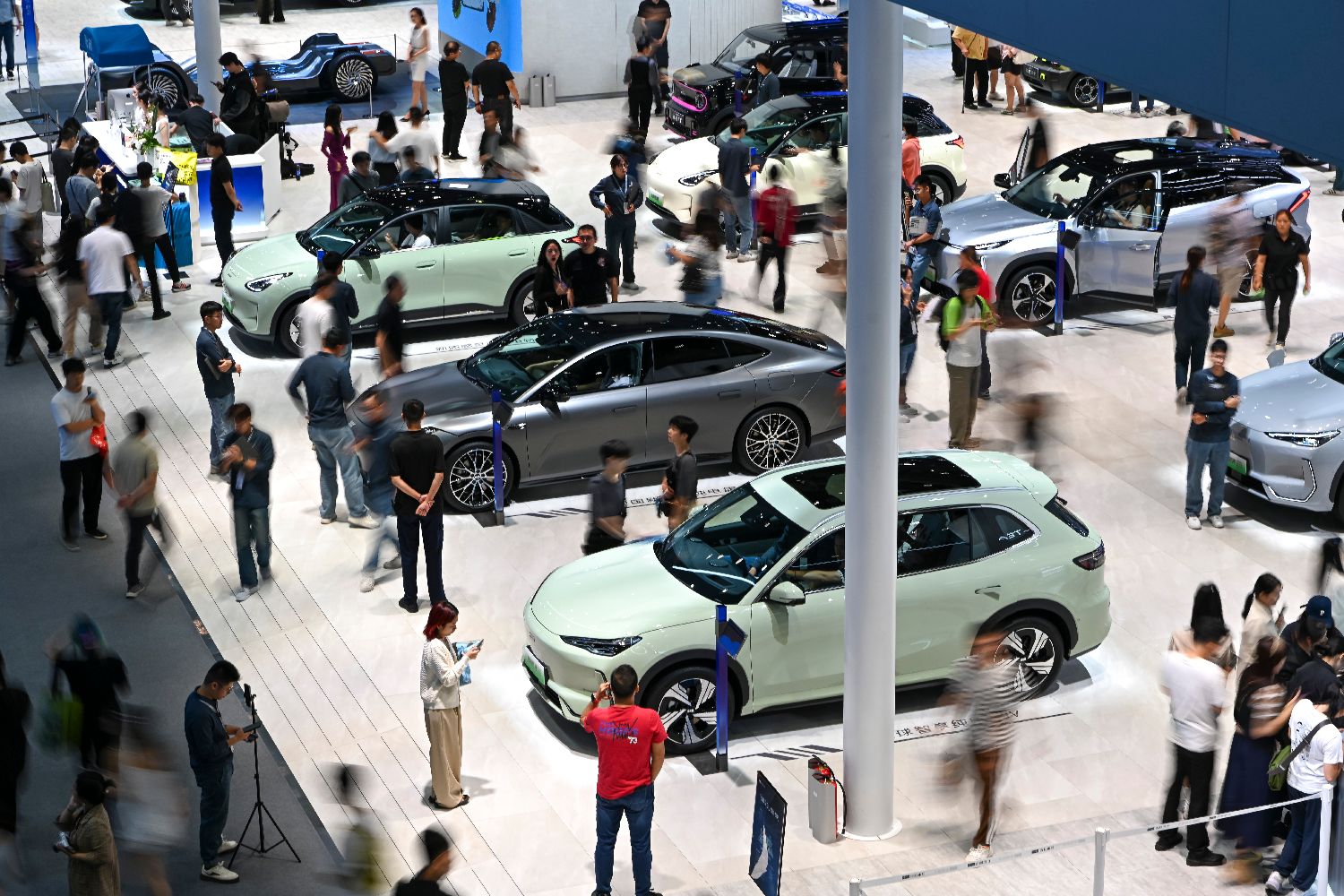 吉利新能源车17日吸引参观者。(图片来源:中新社)