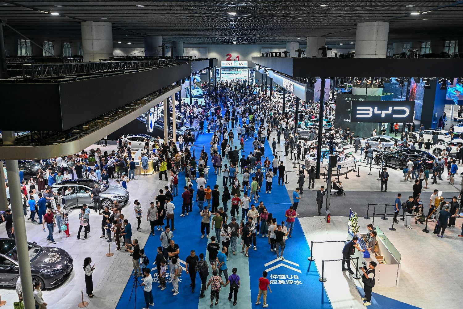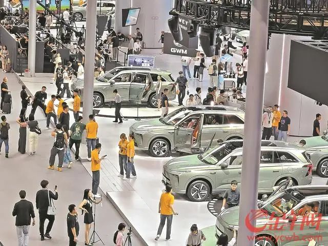 车展现场人头攒动,热闹非凡。(图片来源:广东《羊城晚报》金羊网)