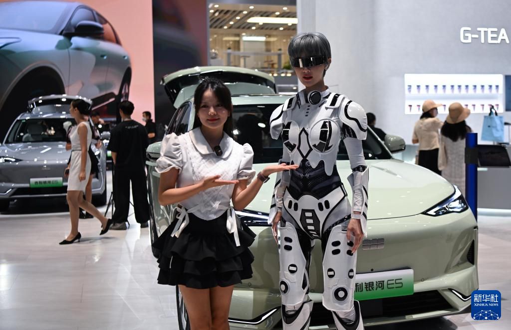 模特在吉利银河ES车型前站台。(图片来源:新华社)