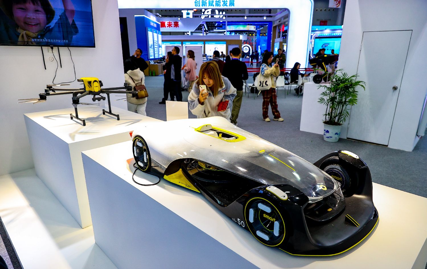 观众20日参观拍摄smart磁动力概念赛车模型。当日,以“设计驱动未来创新赋能发展”为主题的第七届中国国际工业设计博览会在武汉国际博览中心开幕。(图片来源:中新社)