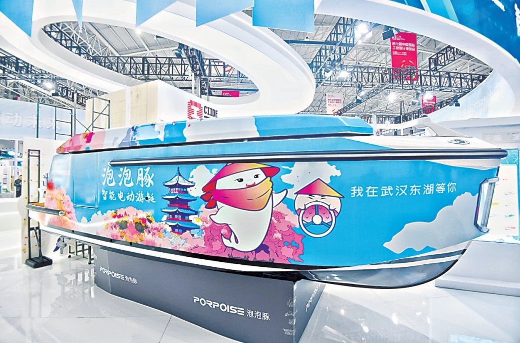 无疆(武汉)技术有限公司展出的泡泡豚智能电动游艇。(图片来源:湖北武汉市人民政府官网)