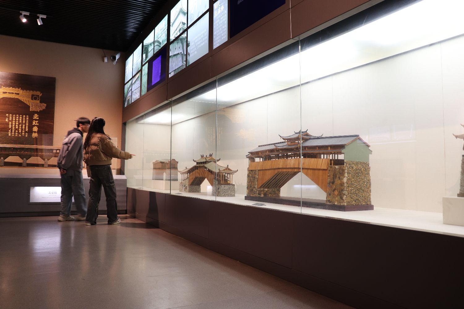 浙江省丽水市庆元县,游客11日参观木拱廊桥模型。