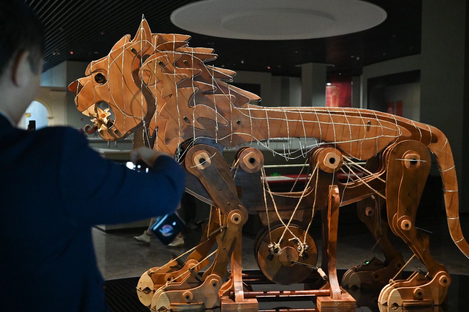机械狮子吸引参观者。(图片来源:中新社)