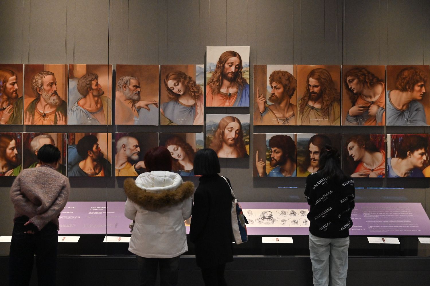 《最后的晚餐》和十三位主角的数字重建。(图片来源:中新社)