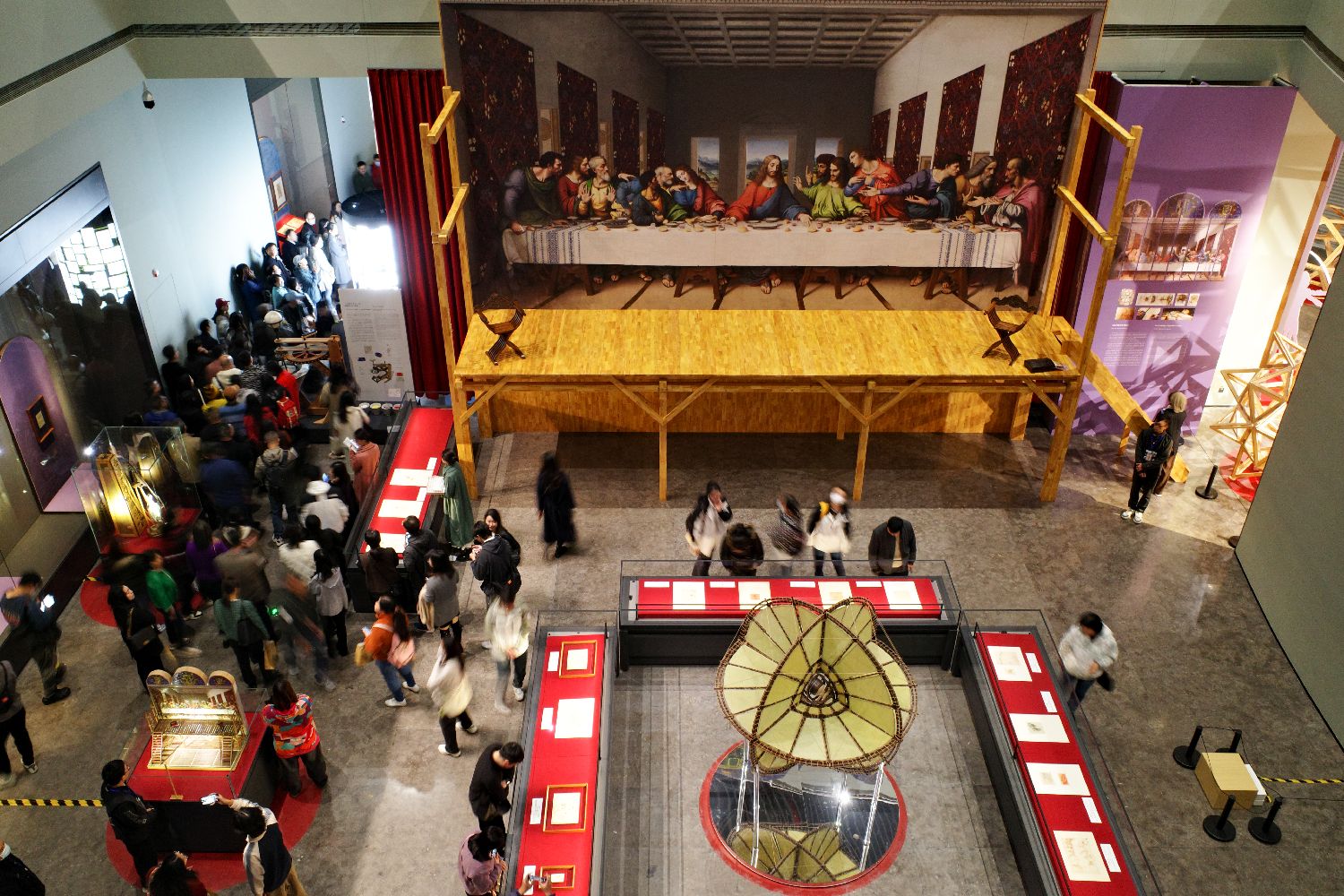 观众在“解密达芬奇——跨时空科技与艺术重现”开幕式专场中参观。(图片来源:新华社)