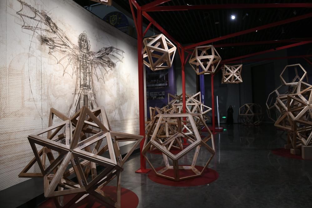 展览展出展品共计约240件,包括达芬奇手稿数字修复与重建作品超130件,手稿还原实物模型及场景约50件,珍稀引进相关古书籍超10本等等。(图片来源:广东南方新闻网)