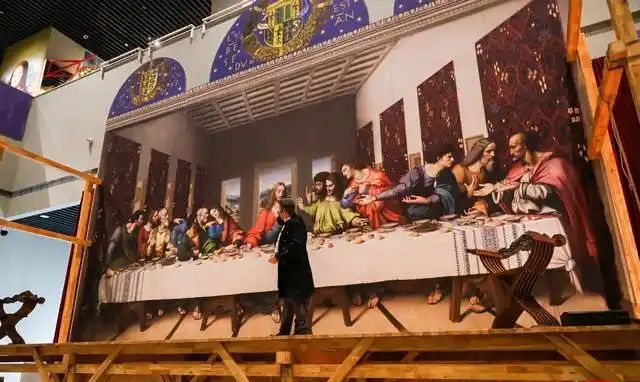 《最后的晚餐》数字修复与重建场景,是本次展品中的另一大亮点。(图片来源:广东南方新闻网)