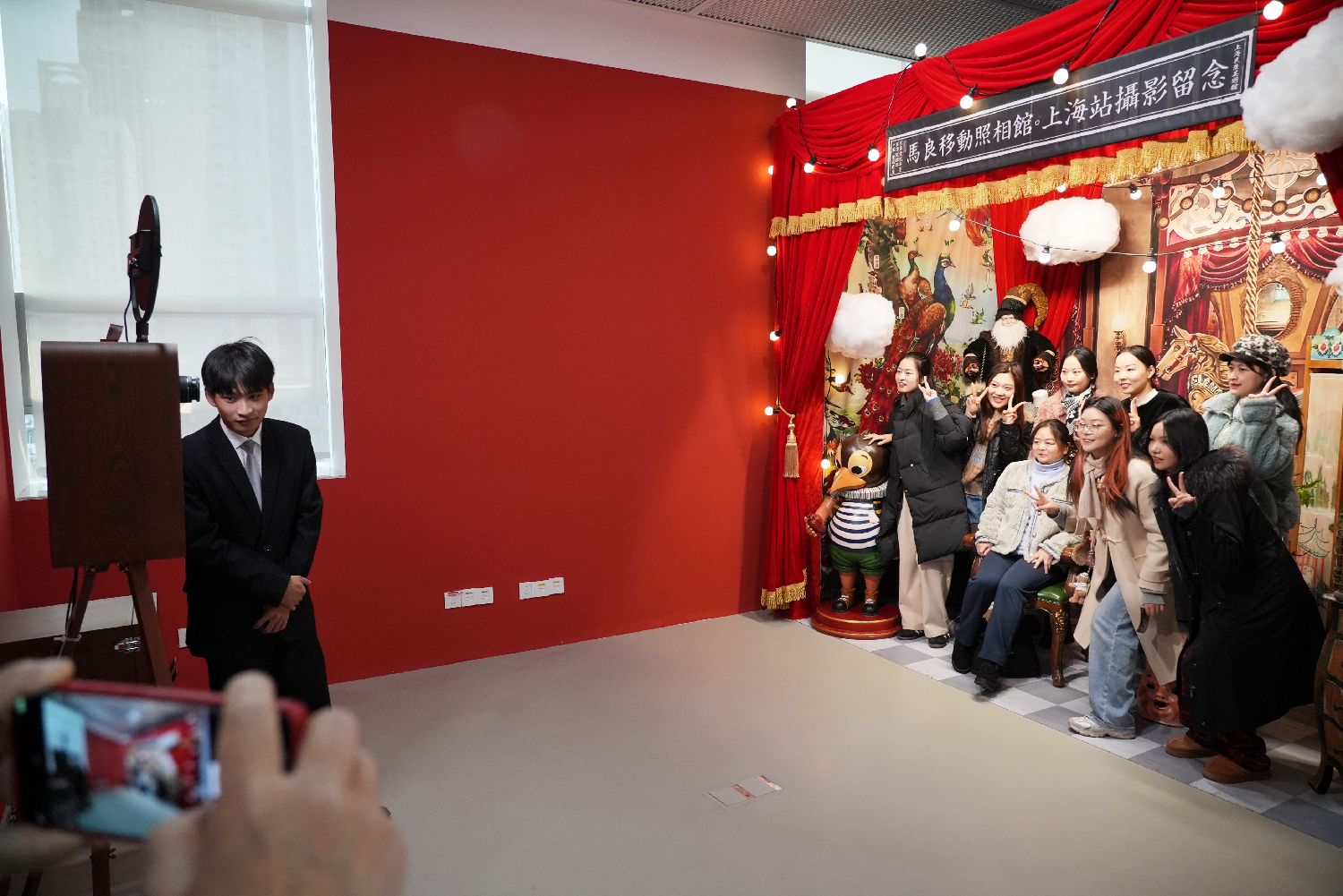 观众在马良作品“移动照相馆”合影。