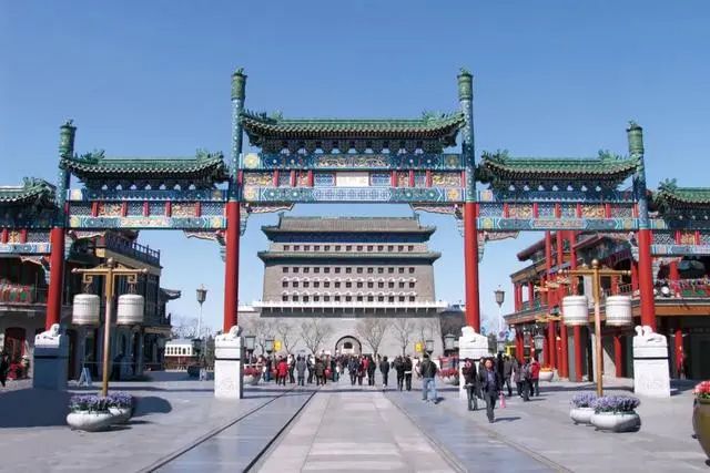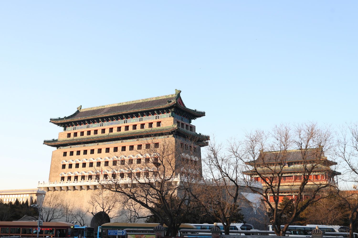 正阳门箭楼位于北京市东城区前门大街北端,占地面积0.21公顷,建成于明英宗正统四年(1439年),明清时期与正阳门城楼、瓮城等共同构成一组兼具防御性和礼仪性的城门建筑群。(图片来源: “北京中轴线遗产保护中心”微信公众号)