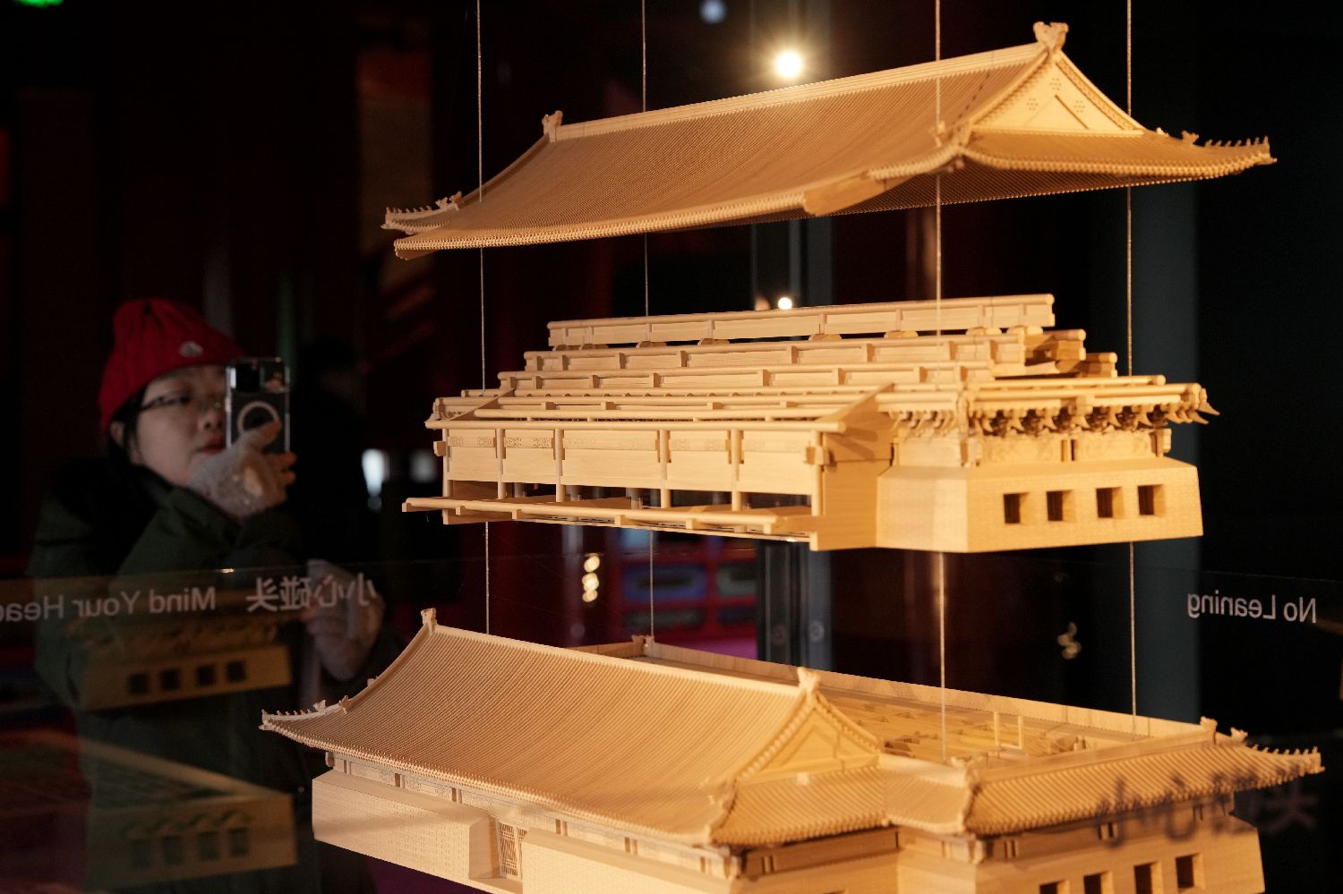 正阳门箭楼模型吸引参观者。(图片来源:中新社)