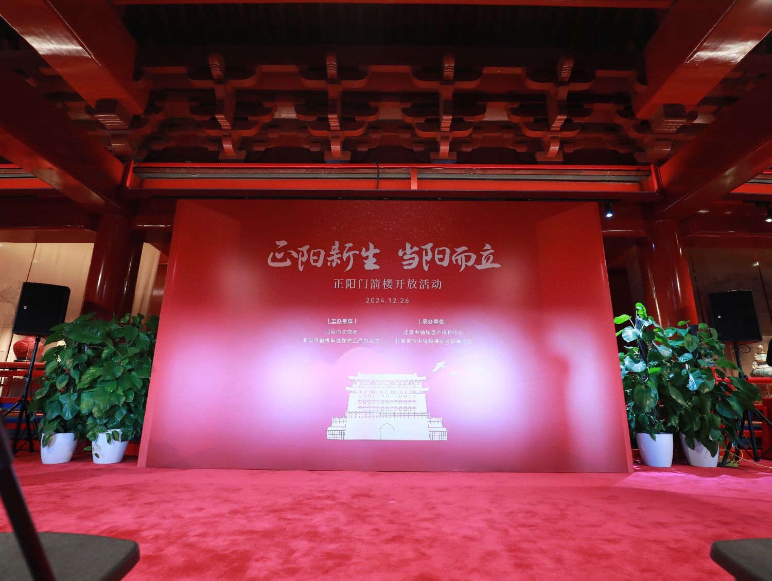 在首日开放当天,正阳门箭楼内举办了以“正阳新生 当阳而立”为主题的开放活动。(图片来源:新华社)