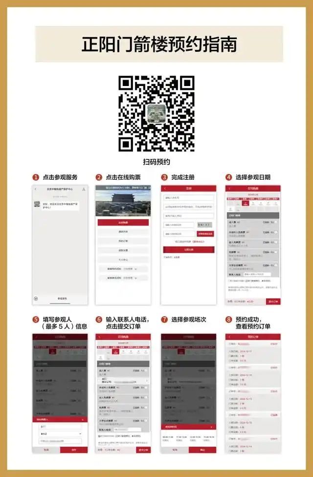 试运行期间采取全员实名制免收费预约参观,需至少提前一天预约,无现场售票。民众可在“北京中轴线遗产保护中心”微信公众号预约次日起7日内门票,并选择参观时段进行预约。预约放票时间为每日17时。(图片来源: “北京中轴线遗产保护中心”微信公众号)