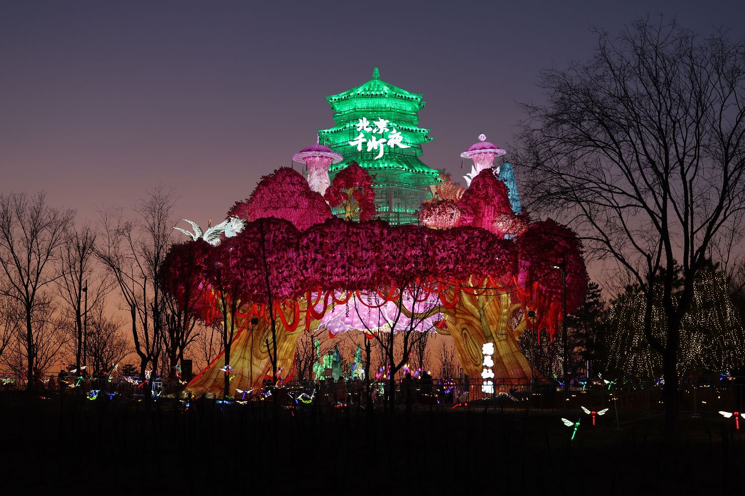 “2025北京千灯夜”在北京温榆河公园朝阳示范区西园正式拉开帷幕。(图片来源:中新社)