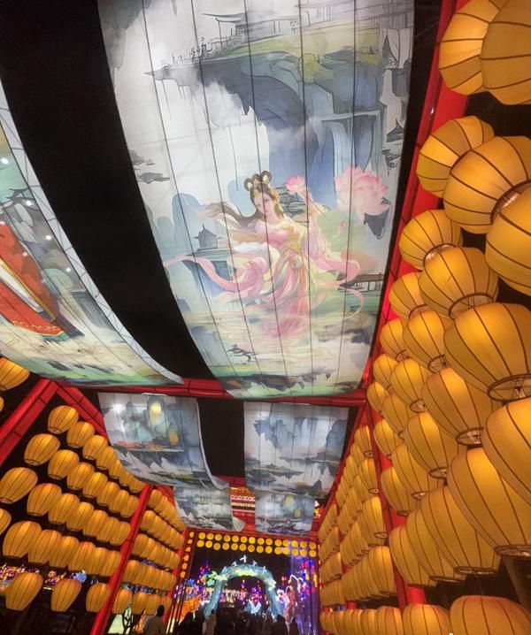 民众从卷轴灯组下走过。(图片来源:北京中国网)