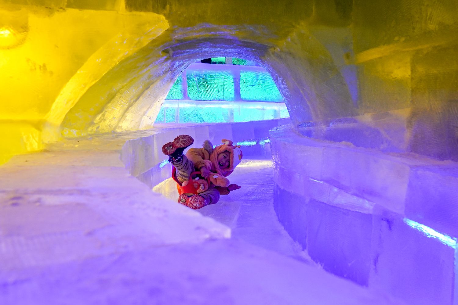 小朋友在园区内玩冰滑梯。(图片来源:中新社)