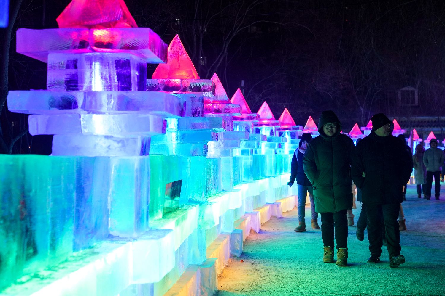 第51届冰灯艺术游园会吸引大批民众游玩。(图片来源:新华社)
