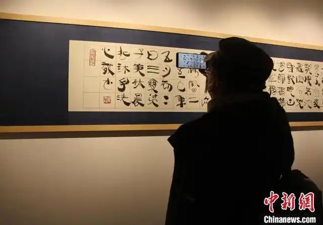 观众9日在济南韩美林艺术馆拍摄《般若波罗蜜多心经》。(图片来源:中新网)