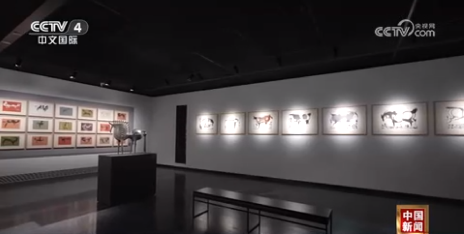 济南韩美林艺术馆展出了艺术家韩美林捐赠的1200件艺术品。(图片来源:大陆央视视频截图)
