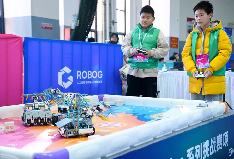 参赛选手操控机器人。(图片来源:新华社)