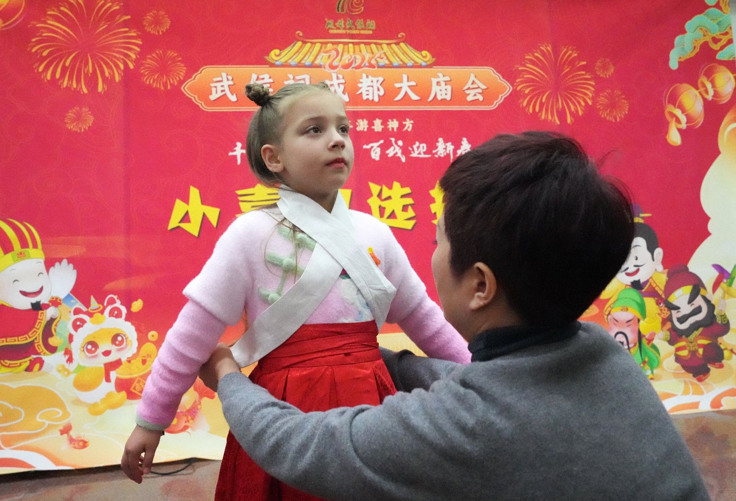 今年武侯祠成都大庙会首次面向全球招募“国际小喜神”。图为“小喜神”路易。(图片来源:红星新闻/武侯祠博物馆)