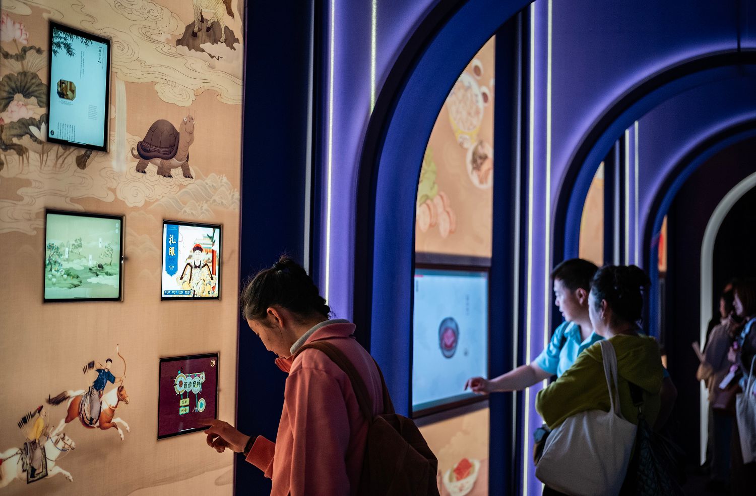 观众在互动体验区了解北京故宫博物院馆藏文物的相关知识。