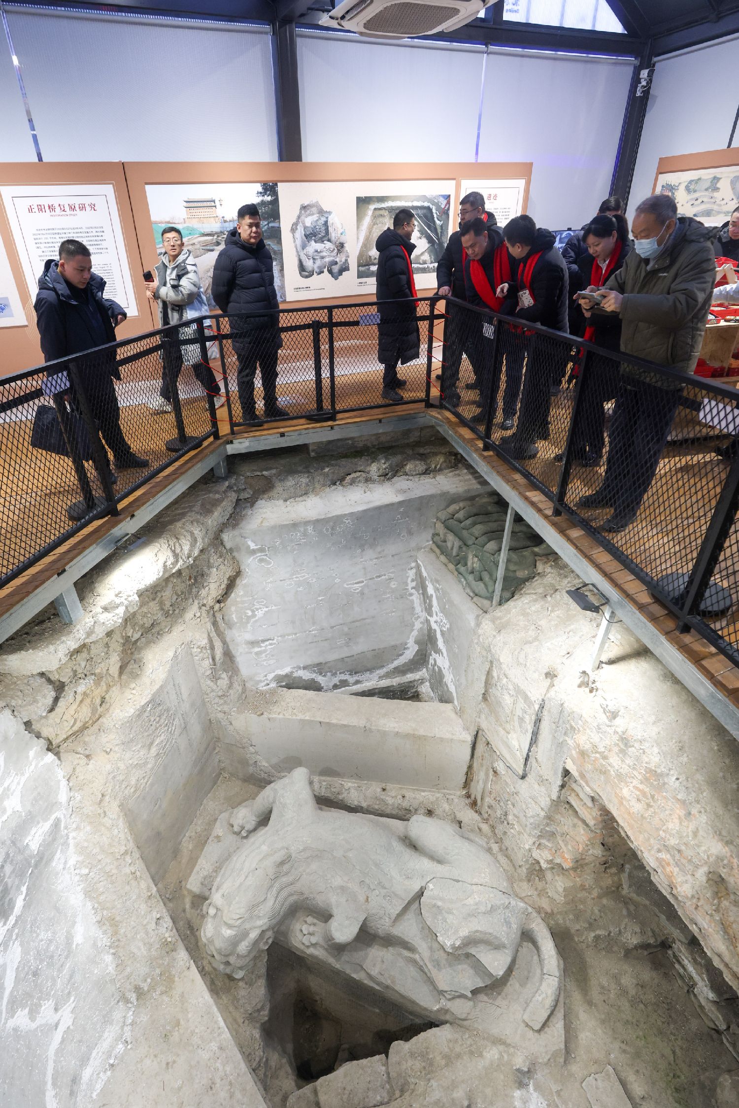 北京正阳桥遗址考古方舱开放 镇水兽亮相