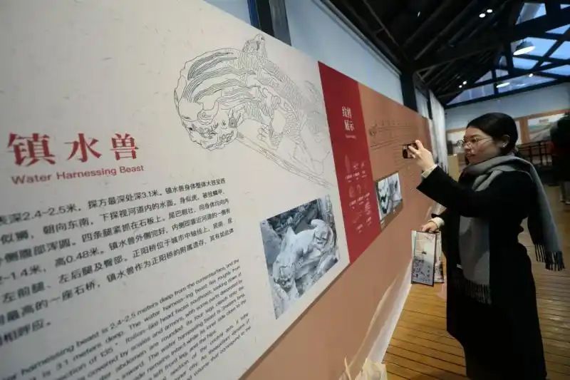 方舱里还陈设有“又见正阳桥——正阳桥镇水兽文物首展”,通过四周墙面上的历史照片、文字等,让游客了解正阳桥遗址和镇水兽的历史故事。(图片来源:《北京青年报》)