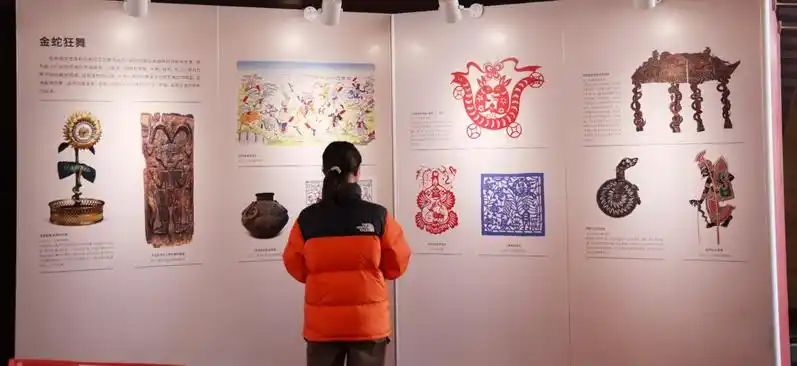 展览分为“幽幽蛇影”“腾蛇乘雾”和“蛇舞丰年”三个单元,通过收藏在博物馆中的蛇文物及图片资料等,从生肖文化的源与流、自然界中的蛇、历史文化中的蛇、民俗文化中的蛇等方面为观众全面解读蛇文化。(图片来源:北京央广网/山西省博物院供图)
