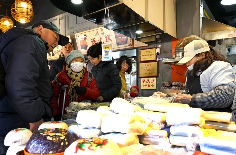 民众在上海七宝老街一家糕团店内选购。(图片来源:新华社)