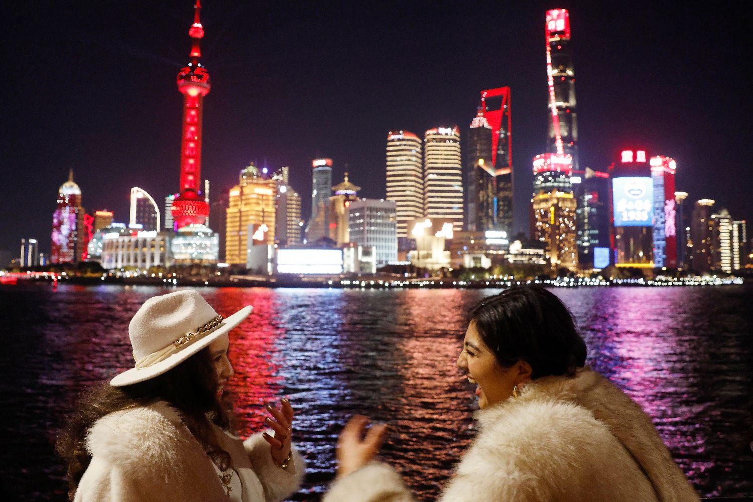 2025年春节期间,上海市景观照明开启重大活动模式,营造欢乐祥和的节日氛围,喜迎新春佳节的到来。其中,外滩、北外滩、小陆家嘴地区等核心区域重要单体建(构)筑物,都换上“新春晚礼服”。图为外籍游客在上海外滩滨江步道上欣赏黄浦江两岸夜景。(图片来源:中新社)