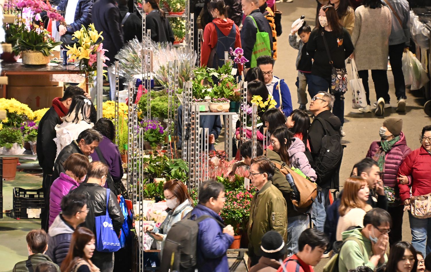香港农历年宵市场1月23日开张持续至1月29日(年初一),全港共设有15个年宵花市地点,涵盖湿货、干货及快餐区,为市民提供了丰富多样的选择。图为香港市民和游客到维园花市逛花市购年花。(图片来源:中通社)