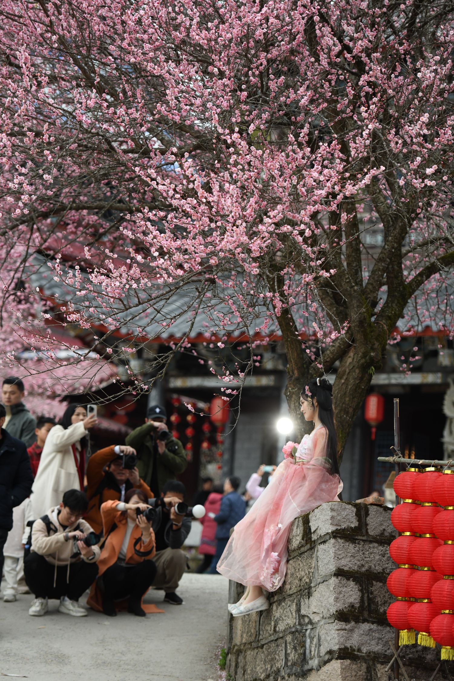 冬季里的粉色浪漫!福州千年古刹梅花盛开引游人