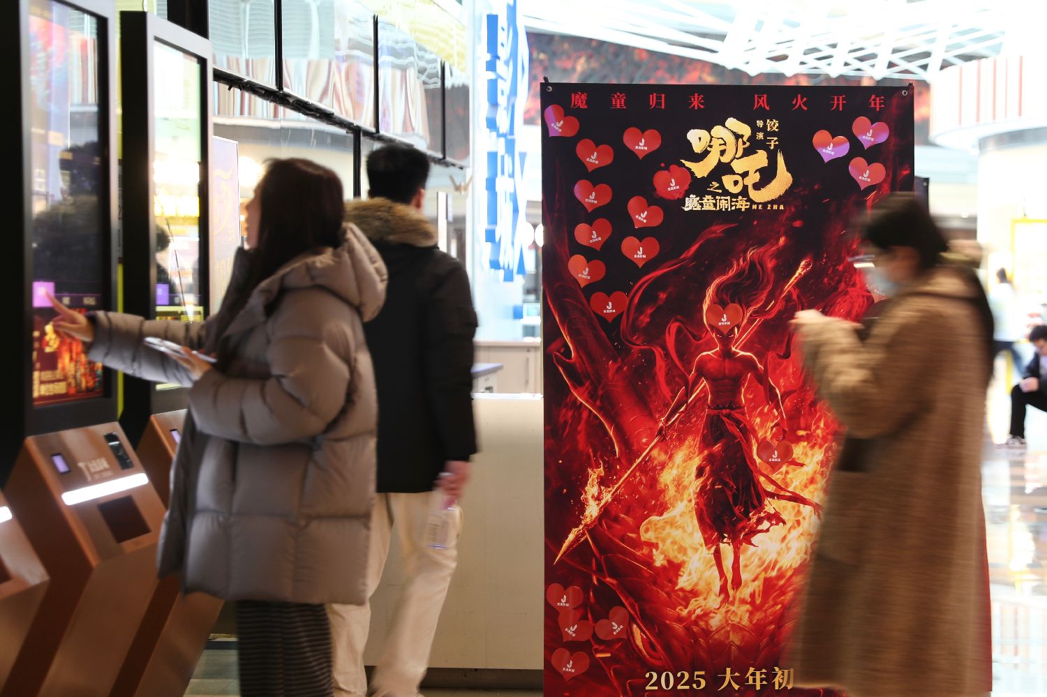 2月6日,北京一家影院外的《哪吒之魔童闹海》海报。