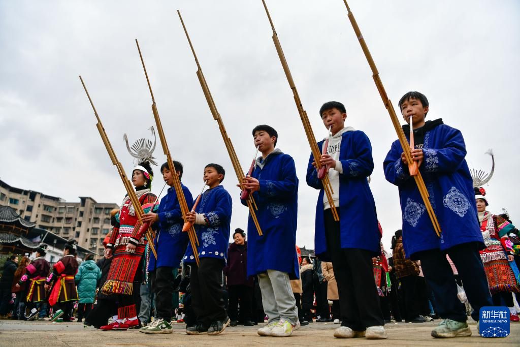 每年农历正月,在贵州省黔东南苗族侗族自治州凯里市舟溪镇,来自凯里周边县的数千苗族群众会穿上节日盛装,聚集一堂,吹起芦笙跳起舞,欢庆“甘囊香”芦笙节。