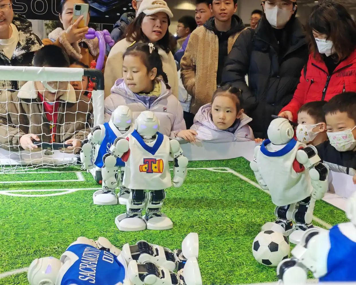 现场不仅有实物展示,更有精彩的机器人表演秀,如机器人足球赛、舞蹈表演等,让孩子们直观感受机器人的灵活与智能。(图片来源:《南京日报》/紫金山新闻)